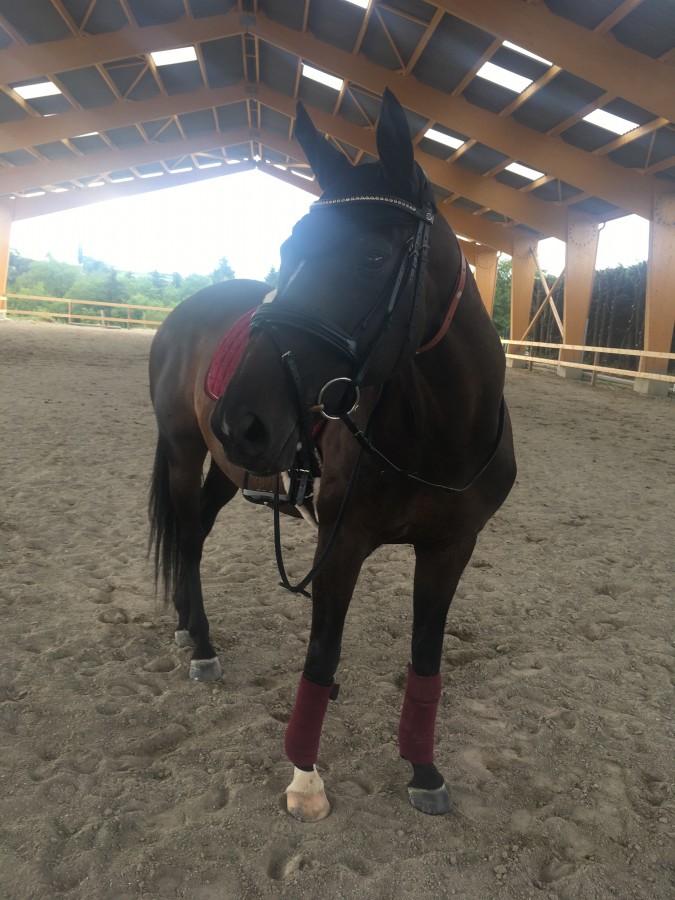 Le rouquin a aussi eu un peu de vacances, fortes variations de températures oblige, mais mercredi on a fait pour la première fois du contre-galop Il a tenté quelques changements de pied ou est repassé parfois au trot mais il a fini par comprendre que je voulais qu'il reste à faux. A partir de là il s'est bien accroché le petit père. L'équilibre est pas encore là forcément mais il y met du sien. Les départs au galop suivants étaient du coup beaucoup plus nickel et sur le pied voulu.