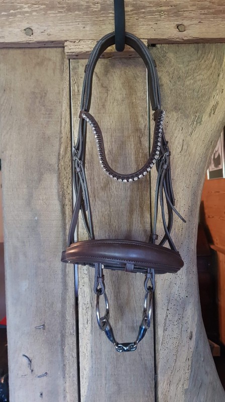 Mon histoire de bridon prend un bonne tournure en fait: quand la dame était venue elle m'avait dit que pour le frontal si je voulais vague je pouvais pas avoir sans strass ni rien (Et puis j'avais bien vu dans le catalogue). Droit oui, espèce de triangle oui mais pas vague donc j'avais regardé les options de strass et j'étais partie sur un truc assez fin et cognac. Et donc la je lui ai fait cracher le morceau, ils sont en vacances et annoncent les commandent pour fin août! Mais elle a chopé deux Xfull chez Karin la semaine dernière où le bridon correspond à celui pour moi mais le frontal est soit vague avec les gros strass où on voit le support métallique de chaque strass je sais pas si vous voyez, ça fait des strass aussi épais dans un sens que dans l'autre enfin je trouve ça laid puis avec le métal. Et l'autre sans rien je pensais droit mais non vague (assez légère quand même on dirait) et donc je dis bah je croyais qu'on avait pas et elle dit bah ouais j'sais pas je pense qu'elle les fait faire spécialement. Bref j'ai dis mais vas-y balance bb !! 250€ zou ! Elle prépare le colis. Je verrai plus tard pour un autre frontal peut-être.