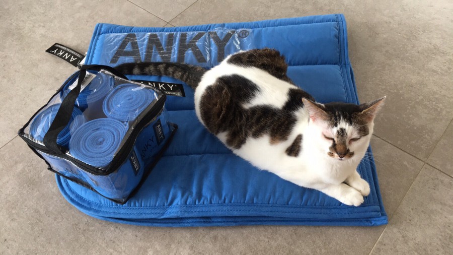 (Je vous mets des photos du poy' ainsi que de nos tapis de dressage et des protec' en question)
