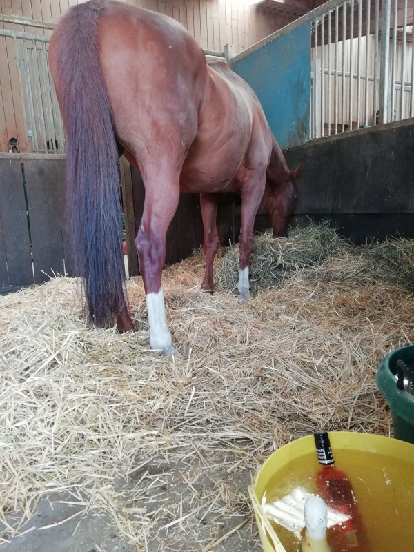 Au passage: la photo date d'hier...c'est pas de l'eau, c'est de la transpiration...juste en restant dans son box. La canicule quoi...