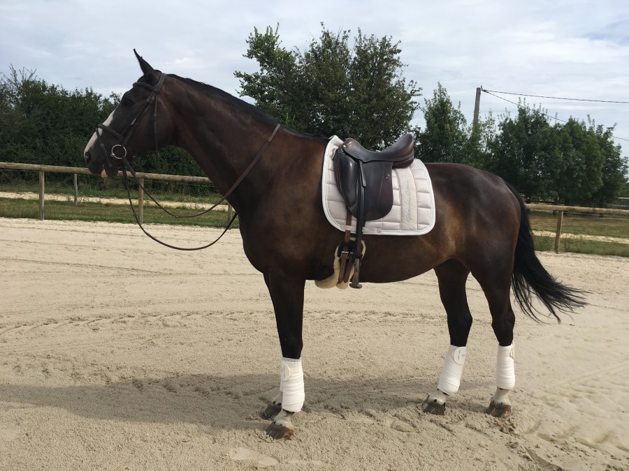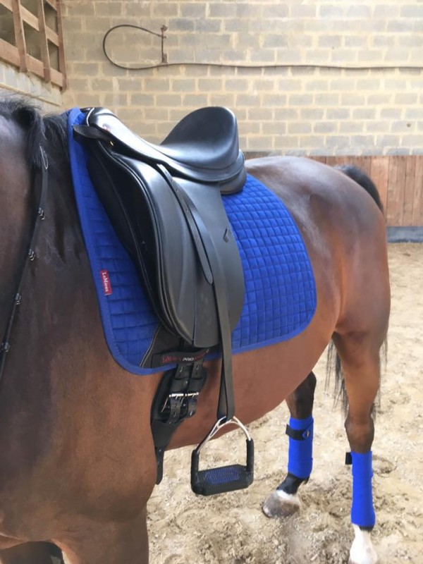 J'ai reçu ma selle de dress KetM S-série, avec ici tapis Lemieux bleu benetton et les bandes Lemieux