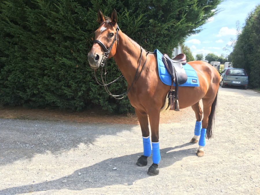 Alors chez nous le sellier va aussi revenir rapidement. Je voulais le faire venir début septembre mais on va essayer d'accélérer. Amor redevient agressif quand je pose la sangle.