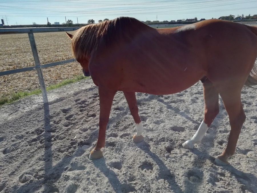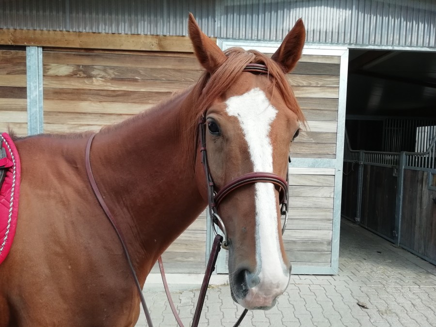 Petite photo du poulichou avec son filet CWD. La gérante de la nouvelle écurie est amoureuse d'Amor et regarde sur internet des vidéos de lui en course. ...et un cheval supplémentaire lui appartenant arrive bientôt chez nous...si j'ai bien compté elle en a 8...sur place...je sais pas si elle en a d'autres ailleurs elle fait collection.
