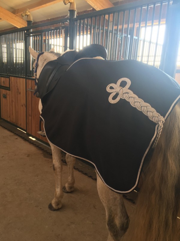 (Je suis de ceux qui trouvent qu'une polaire n'est pas spécialement faite pour sécher, il existe des matières faites pour ça... Pour moi la polaire, ça va bien pour tenir chaud, protéger des courants d'air etc. pendant le grooming, le transport, ou dans une situation statique/détente pour le cheval. Me trompe-je ?)