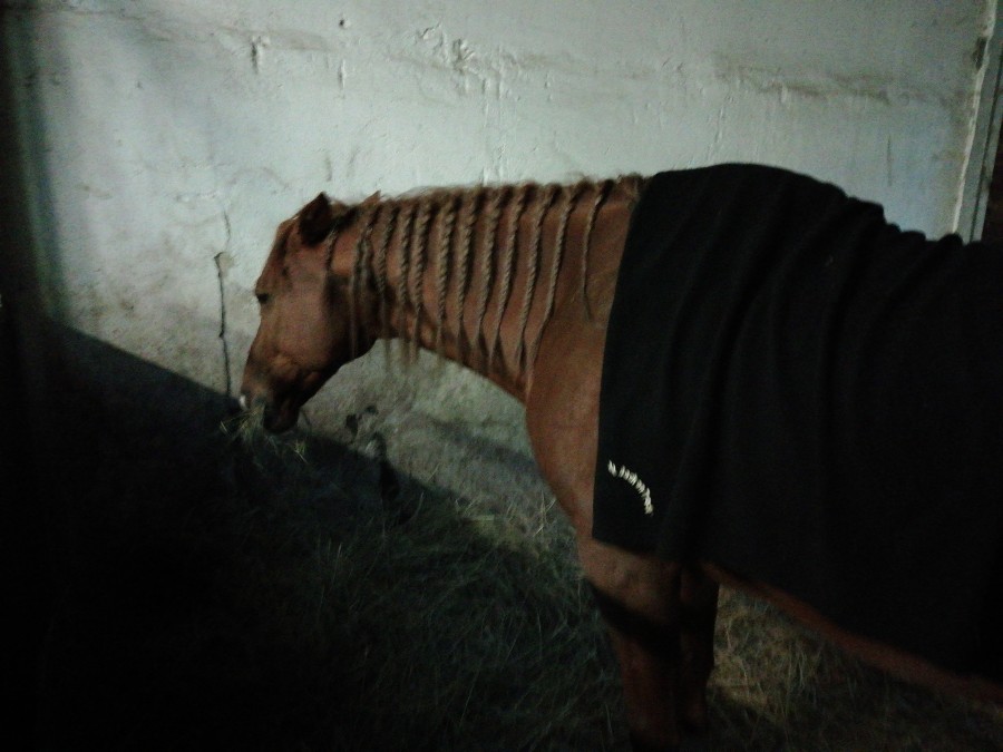 Amor a bien un problème au dos, pas besoin de monter pour vérifier. Et du coup ça pourrait expliquer pourquoi il est subitement devenu rétif au saut en liberté. Impossible de toucher son dos sans qu'il menace de me mordre et y a une petite gonfle, genre quand j'appuie ça s'enfonce et la marque du doigt reste.