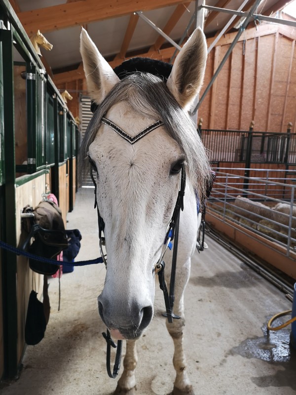 Normalement, vendredi soir, réception du nouveau filet cognac pour aller avec ma selle. Le casse tête pour le trouver ! Obligé d'aller voir aux USA pour trouver du oversize jolie ! (strass, découpe, couleur). Et pour un top prix. J'espere ne pas être déçue