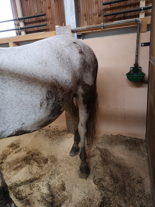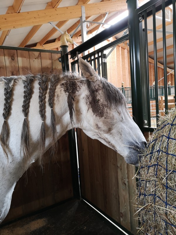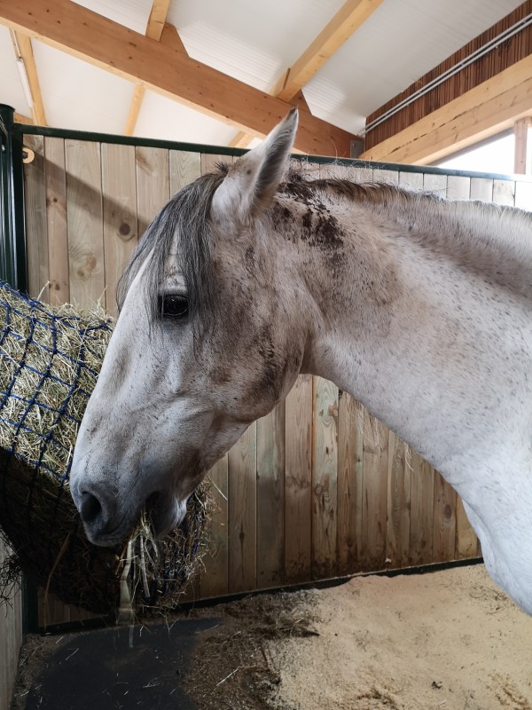 Pour le poney méga bosseur qu'il est, ça lui bouffe le moral de ne plus rien faire. Dès qu'il en a l'occasion il essai de me traîner dans la carrière ?