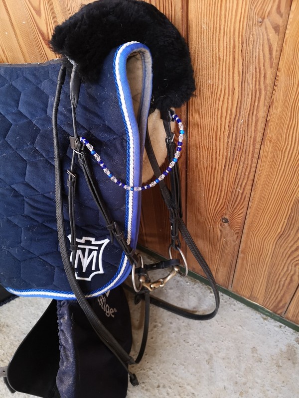 A priori ça sera têtière et frontal taille cheval et montants taille Cob.