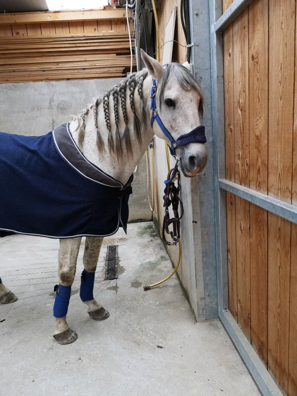 J'ai testé mon nouveau filet, parce que moi, je suis une ouf qui teste en concours les choses... y compris de nouvelles rênes. Mais bon, je partais pas sur un cross non plus. J'ai bien aimé les rênes d'ailleurs.
