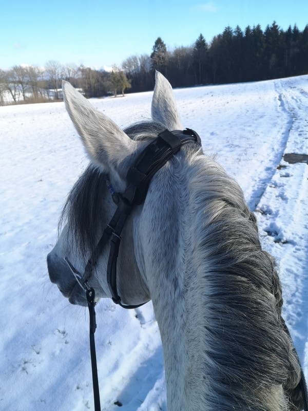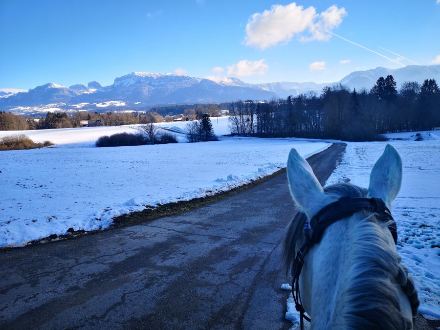 Alba, il coule une super retraite en troupeau et tout confort avec le luxe d'aller en ballades ! Il était encre d'action pour travailler dressage, mais ne suivait plus mon niveau, alors plutôt que te lui coller un nouveau cavalier sur le dos, je l'ai retraité à 17 ans. Il profitera donc longuement des ballades avec sa nouvelle cavalière de ballade :)