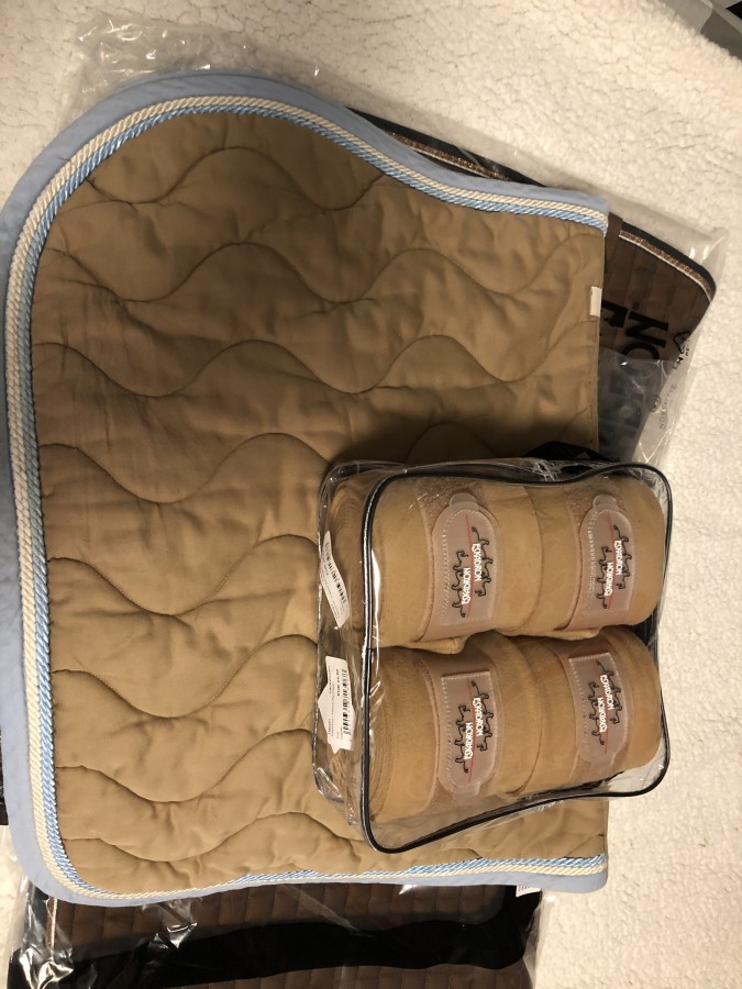 Premier test avec le dessus de selle mouton, c'est vraiment super confortable surtout quand on a sous la selle un cheval péter de force (et qui avait envie d'évacuer le trop plein d'énergie). Petit plus, cela m'empêche de glisser sur ma wintec 500, qui commence a devenir trop grande pour moi.