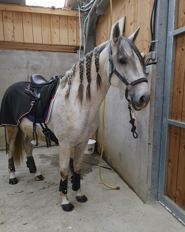 Faut vraiment que je prenne le temps de prendre des photos. Mais l'an dernier j'avais fait une vidéo sur mes tapis de selle, en gros tout est à vendre sauf ce qui est marron, beige, marine, gris et noir...