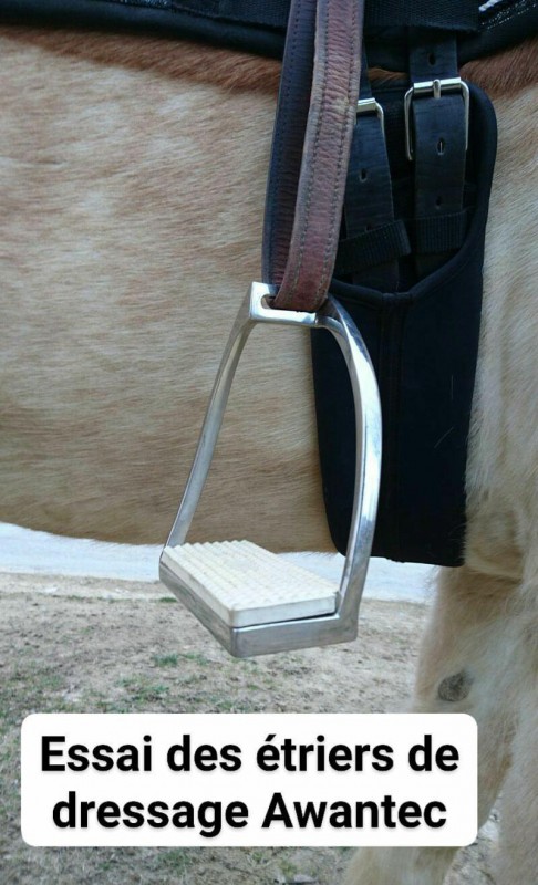 Et après sur ma selle de dressage j'ai des Awantec parce que le look est plus classique. Oeillet perpendiculaire aussi donc mêmes bénéfices, par contre plancher légèrement incliné.