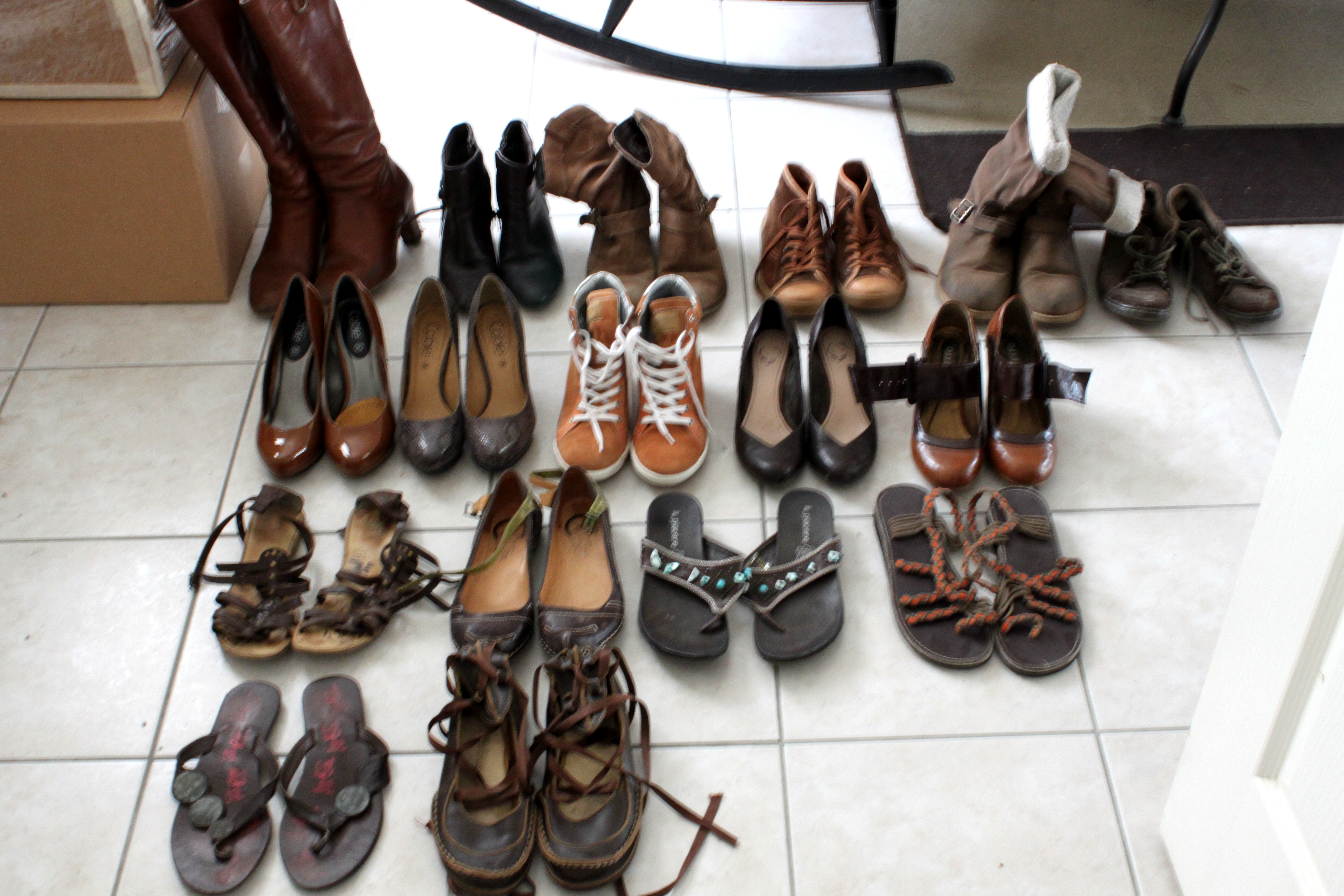 Je vous prends pas mes chaussures en photo...j'avoisine la cinquantaine de paires...J'essaye de faire du vide mais pas facile...