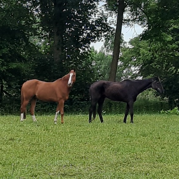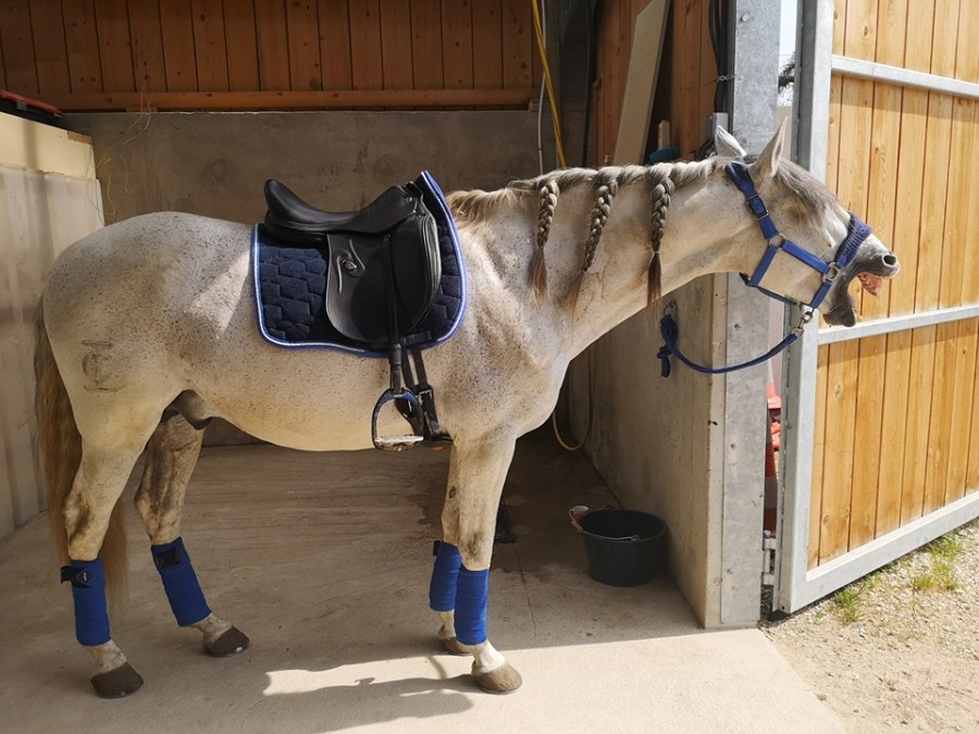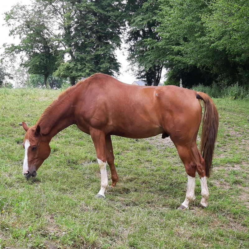 Le mien est tout le contraire, c'est une boule de nerfs, il monte en pression tout le temps et pour rien à partir du moment où il est en groupe. Il devient carrément ingérable en cours collectif de saut, c'est hyper frustrant à la longue. Idem, j'ai beau lui montrer tous les jours le même sous-bassement, faut toujours qu'il me le refuse à chaque nouveau court et que je recommence la désensibilisation du début. J’ai l’impression que ça rentre par une oreille et que ça sort de l’autre aussitôt. Et à chaque fois qu'un croisillon devient un petit vertical, il s'arrête net devant quoi que je fasse (et pourtant, je vois bien sur les vidéos qu'il voit de loin que la barre a changé). Il a tellement de petit vice comme ça que c'est épuisant à la fin, et je perds vraiment patience, c'est la raison pour laquelle j'ai décidé de le confier à plus patient et meilleur que moi. Idem en concours, qui dit nouvel environnement dit on recommence tout à zéro ; je suis obligée de faire 2 tours : le premier pour lui monter la piste et les obstacles (il va me faire un refus sur les 3 premiers obstacles donc forcément je suis éliminée), puis le second histoire de vraiment jouer le jeu (il va sauter les 3 premiers obstacles car il les aura déjà vu, mais va s’arrêter net sur le 4ème car c’est nouveau et c’est stressant). Et j’ai beau anticiper tout ça, au bout d’un moment je m’épuise physiquement donc c’est la cata. Ça fait 2 ans que j’essaie d’y croire, mais là je baisse les bras. Les pâtures tombent au bon moment car je suis à saturation, ça va nous permettre de nous changer les idées et de bosser dans d’autres circonstances, en pleine nature. Je vais vraiment en profiter de ces moments-là !