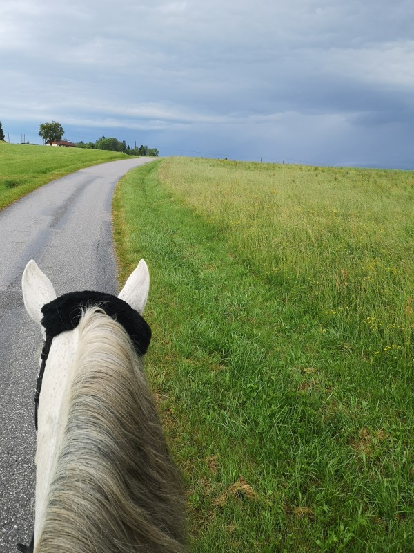 Je fais minimum une longe/liberté et une balade rien qu'au pas. Le reste ce sont des séances sur le plat, à l'obstacle ou une voire plusieurs balades. Je me force au moins à ça même si parfois entre deux nuits c'est dur pour moi parce qu'elle est sujette aux myosites (Je la soupçonne PSSM1 même si pas testée encore) et du coup, on diminue le risque de crises en faisant travailler tous les jours ou presque plutôt que des séances disparates.