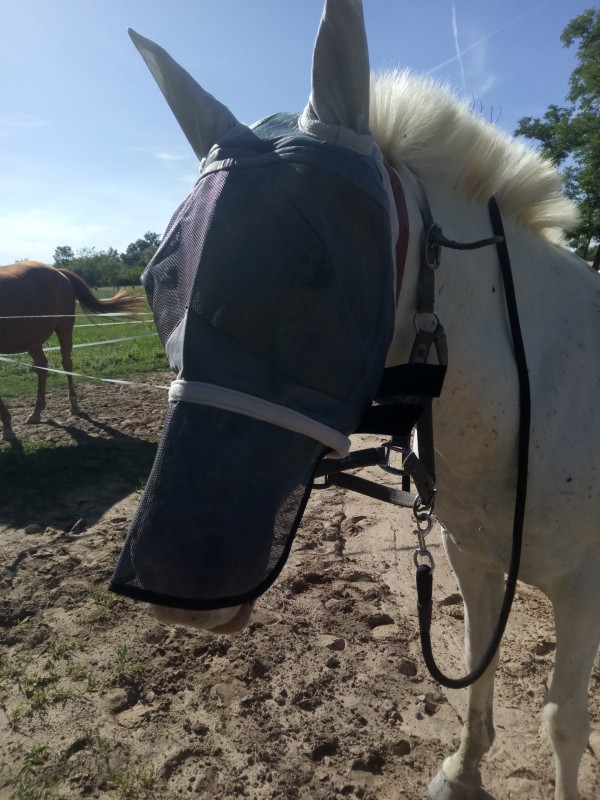Par contre j'ai pris cob mais ça taille un peu grand.. tant mieux car ça lui recouvre bien le nez et ça c'est top ! Ça n'écrase pas ses yeux ni ne lui sert la nuque. J'ai ajusté les scratchs au mieux et j'ai oublié de lui découper les oreilles..