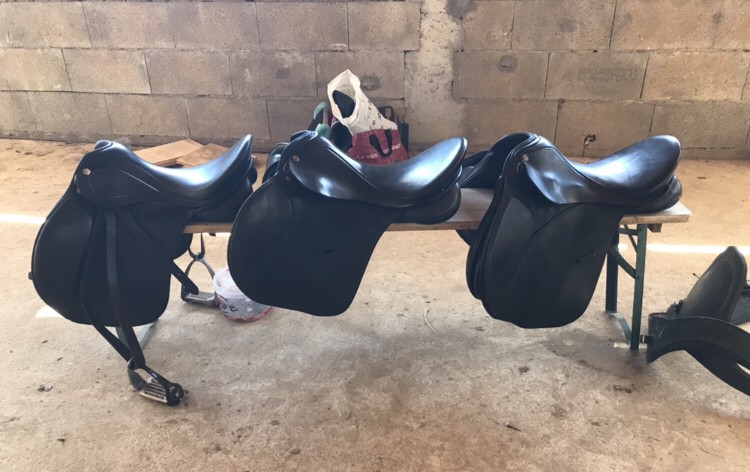 Ensuite vérification d'usage des 3 selles , toute ok ! Juste la typé CSO a refaire les matelassures entièrement (sous environ 90?) tout vidé et refaire car ils ont BOURRÉS les matelassures a fond et ça ne ressemble à rien ! Et elle convient pas du tout mais ça on savait déjà ^^ ! On s'est pas attardé !