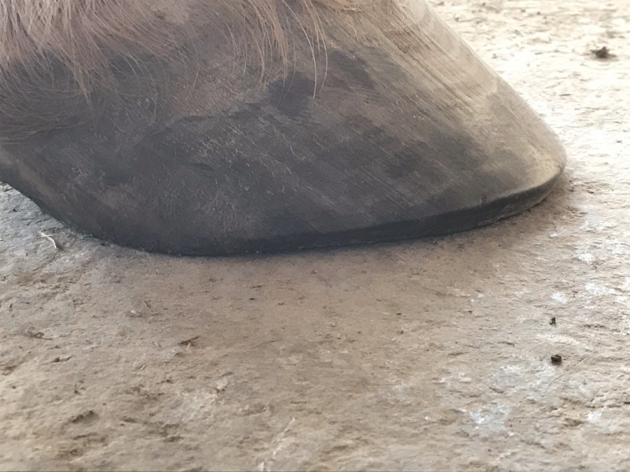 Tient Julie j'ai pris une photo comme le parage à 1 semaine , c'est ce qui t'aidera pour que la corne ne casse pas , mais il faut que le pied ne soit pas si long ! Et ça vous pouvez le faire entre 2 passages ! Le podologue m'a filé une râpe samedi dernier :)