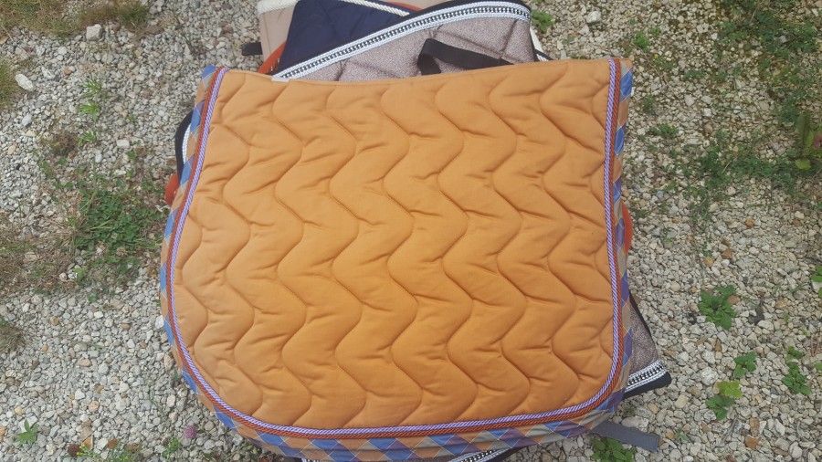 Hello les filles, je remets en vente mon eskadron dressage taille cheval si jamais car il est plutôt épais et avec l amortisseur winderen, il faut plutôt des tapis fins. Il est quasi neuf. Je le vends 50 euros port compris.