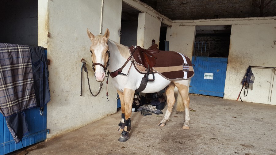 Bon aujourd'hui j'étais en stage je suis monter en selle mixte thorow...