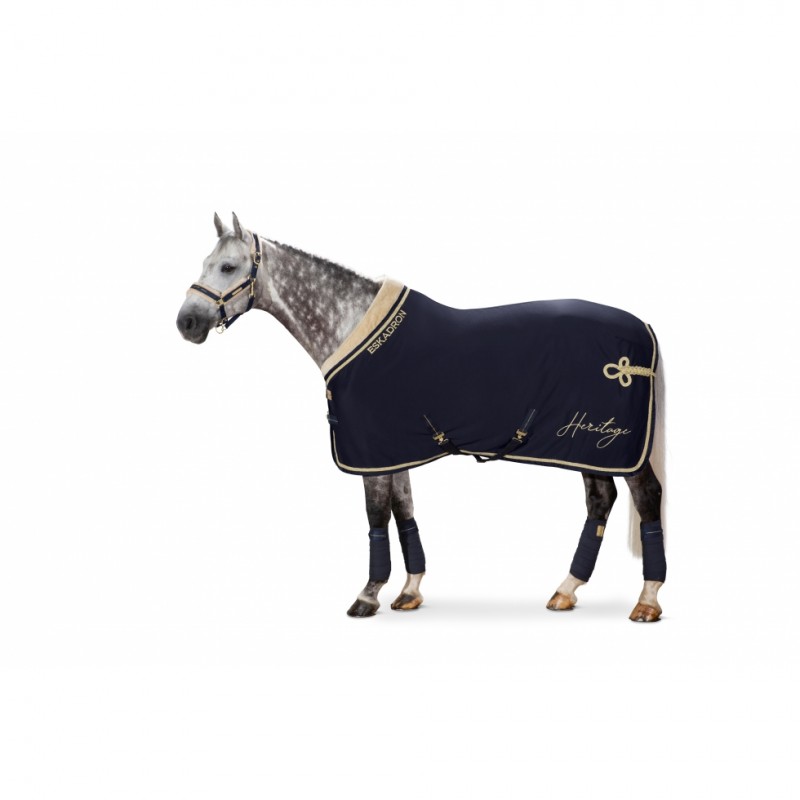 J'ai commandé la Eskadron jersey Héritage en oxford navy pour mon poney. Elle ne nous servira à rien puisqu'il ne bosse pas, qu'il a déjà une top séchante, qu'il n'est pas couvert au pré et qu'aucune couverture ne lui va correctement, mais bon dieu il va tellement être canon avec <3