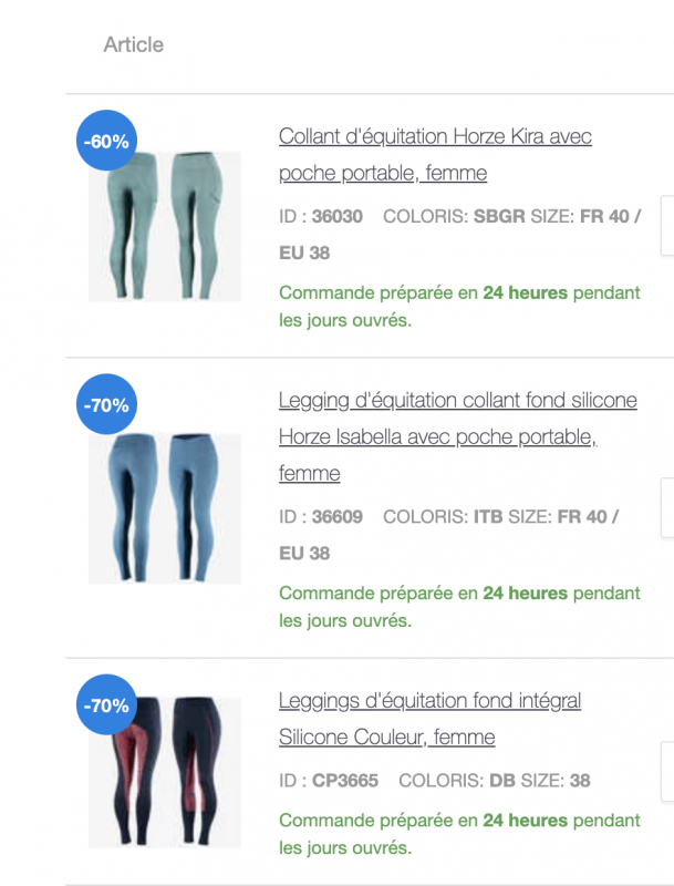 753 (séchage mouton),754 (enlever les poils),777 (enlever les poils),329 (entretien cuir),852 (éponge à bottes),