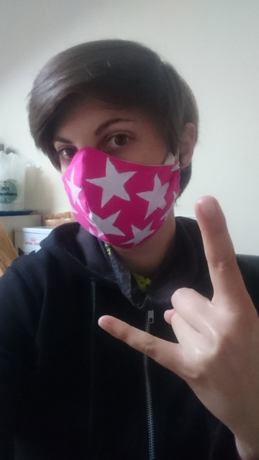 Et parce que c'est fun et que j'ai que ça à faire, j'vous mets 2 photos de mes masques covid-touch 100% fais maison lol