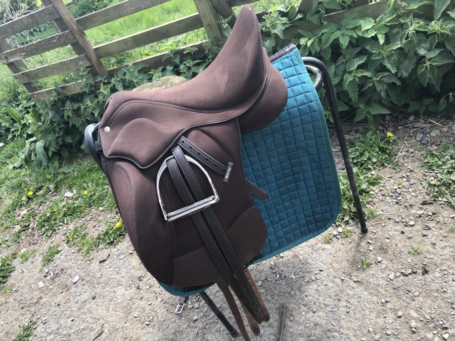 Elle est vendue avec sangle 40cm (ça par contre ça risque d'être trop petit) et étrivières taille M,et le kit de nettoyage devoucoux, tout est dans un superbe état. La selle était utilisé sur un petit cheval assez fin, comme le miens.