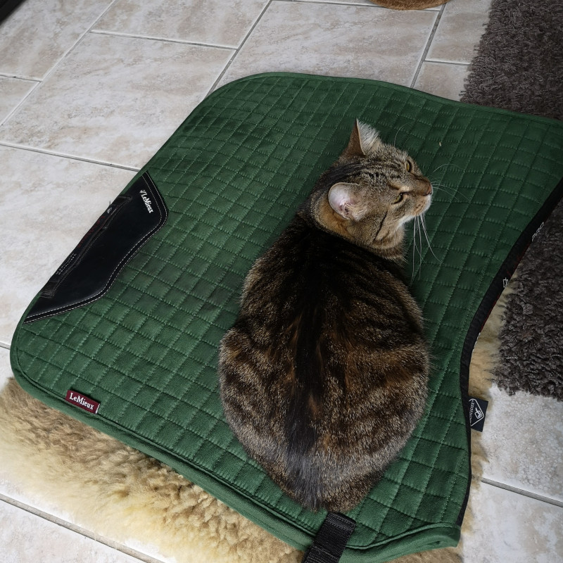 La nouvelle sangle Stübben est top, et mon tapis Lemieux tient enfin à sa place (j'utilise le passant de devant et le passant libre), mouton compris.