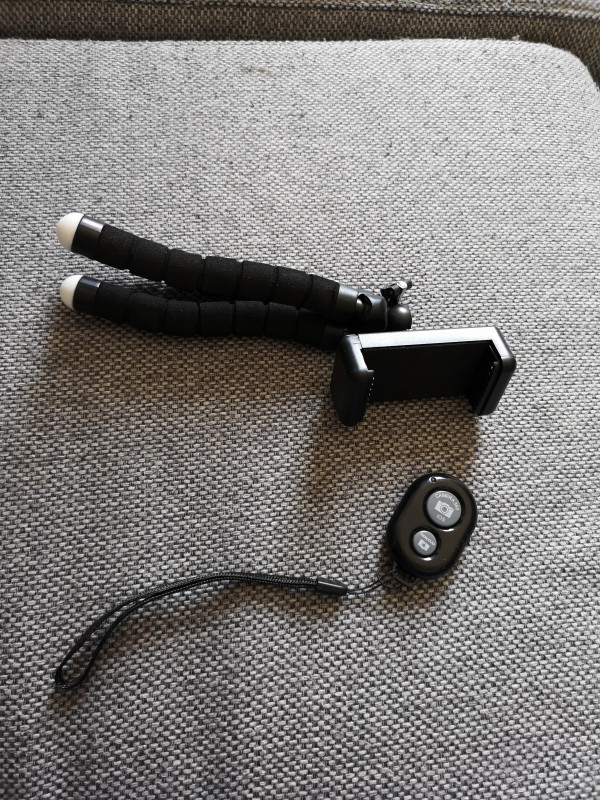 Ca y est j'ai trouvé. Il suffit que je connecte la commande au Bluetooth, que j'ouvre la caméra, en sélectionnant soit video, soit photo, puis que je clique sur la télécommande pour filmer ou faire une photo. Bon le défaut c'est que ça ne tourne pas, donc si je le mets en C on ne me verra pas dans les coins, mais bon, c'est déjà quelque chose que j'ai...