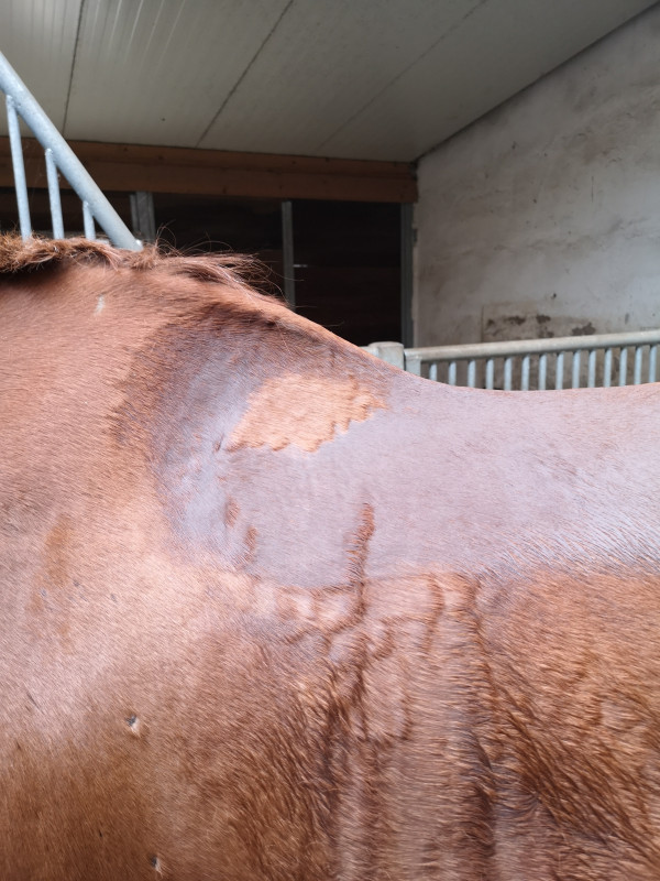 Aujourd'hui c'est la première fois qu'il a ces traces. Il a fait du muscle depuis 1 mois avec du travail à pied. Je vais continuer à fond sur le travail à pied ce mois-ci, déjà pour monter moins, puis pour améliorer encore son dos avant le passage du sellier.