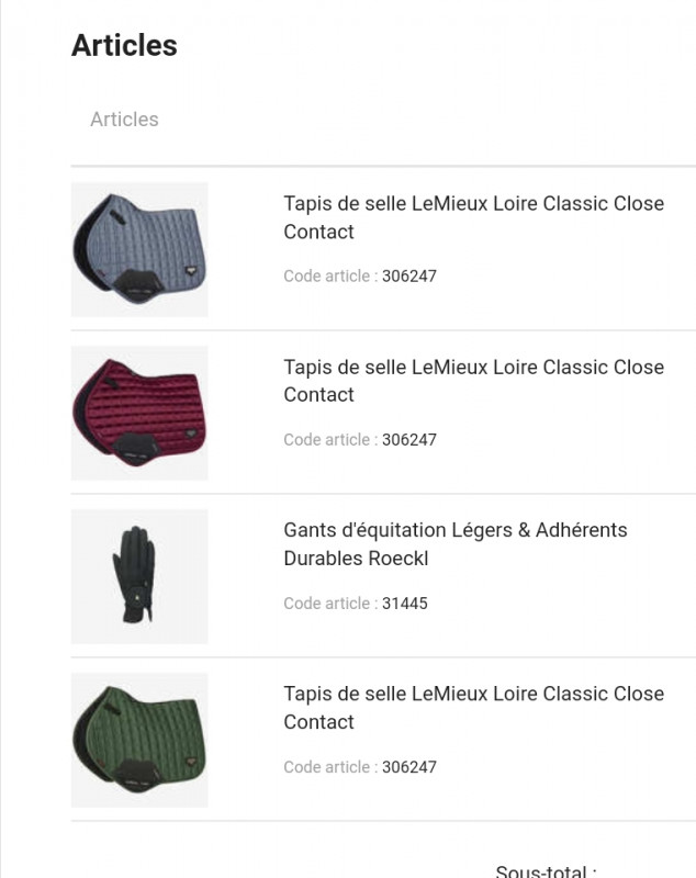 753 (séchage mouton),754 (enlever les poils),777 (enlever les poils),329 (entretien cuir),852 (éponge à bottes),