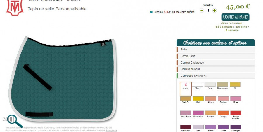 Le prix est montré directement avec cordelette. Il faut activement cliquer sur "aucune" pour que le prix repasse à 45 euros.