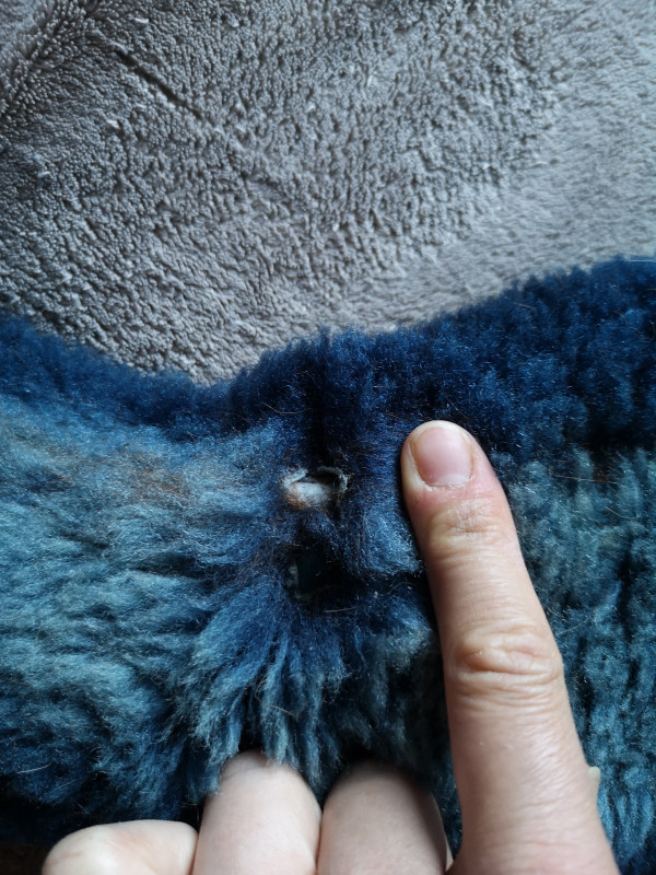 J'ai récupéré la sangle Mattes que j'avais vendue. Il y avait effectivement un petit trou à un endroit de la sangle...sauf que c'était qu'un tout petit trou quand je l'ai envoyée !!
