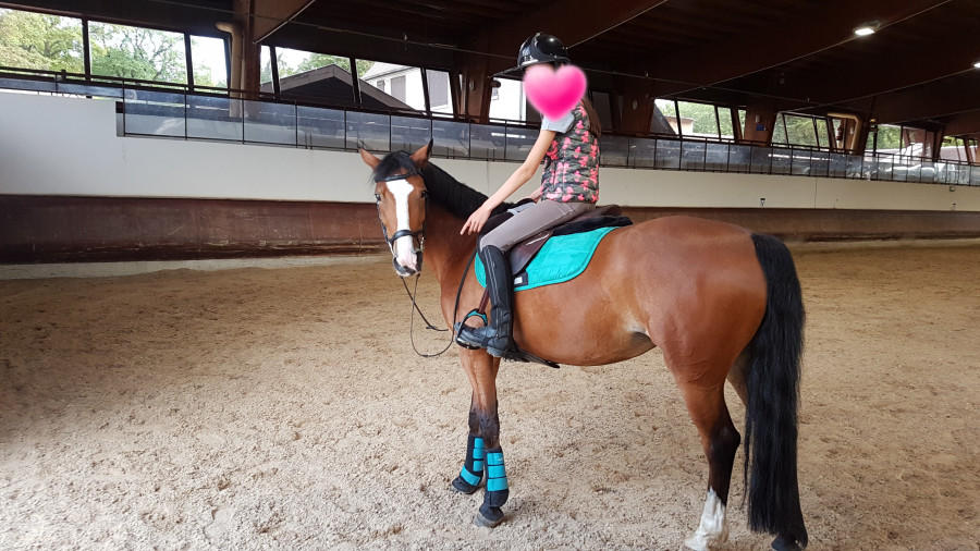 En ce moment aux écuries il y a une jument arabe croisée paint pie alezane. Elle est très faite en zarab', mais avec un plus de taille et plus de cadre. Elle est vraiment très chic !