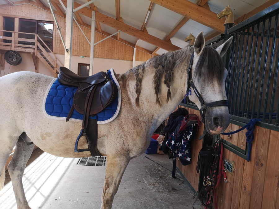 Monsieur a décidé de se gratter la tête avec son postérieur... J'étais rênes longues... Il s'est pris le postérieur dans la rêne...