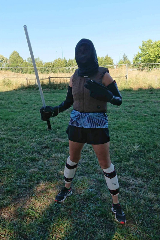 Oh et, faute de reservir un jour sur le cross, mon gilet à trouvé une nouvelle utilité comme plastron au sabre XD