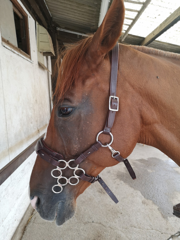 Enfin je sais que nous, si quelqu'un nous dit "la muserolle ne va pas", mais qu'il fait des trous dans le reste du filet, puisqu'on change le filet complet, il peut se brosser !