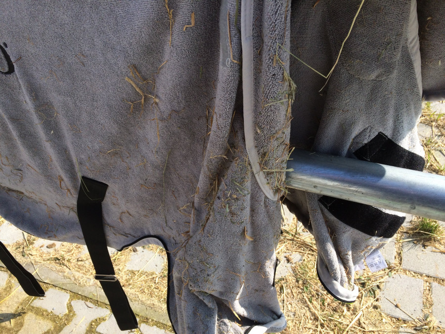 Moi, je ne me pose pas de question, c'est tonte? Plus facile pour la logistique, pas besoin d'attendre qu'elle sèche après le travail (et elle travaille quand même pas mal) et en plus à l'écurie, ils peuvent permuter les couvertures dans la journée si besoin.