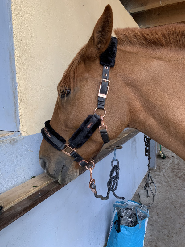 Je suis repartie de la sellerie avec un couvre-cou Horseware Optimo 150g soldé à 30 euros. Mon WB était en fin de vie.