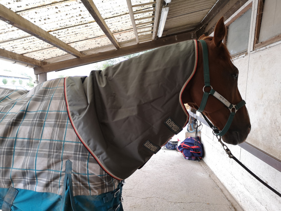 En règle générale Q n'est pas couvert mais depuis 2 hivers je le trouve plus frileux qu'avant, notamment avec l'humidité et le vent. Vive la vieillesse (non bon a sa décharge ils ont pas encore d'abri au pré, j'peux pas lui reprocher de se cailler les meules quand pluie et /ou vent).