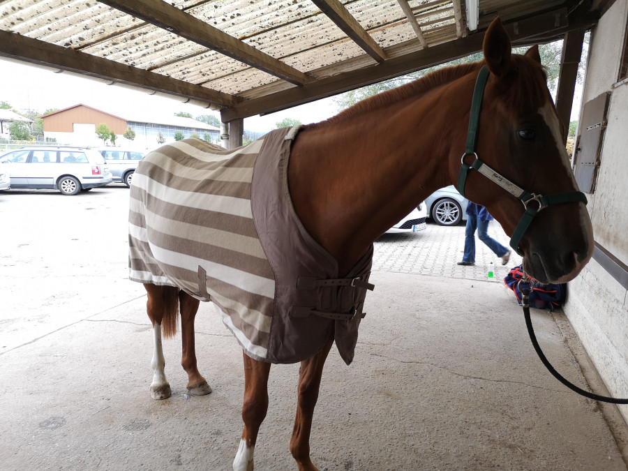 Du coup j'ai ressorti l'imper. Je vais demander que les palefreniers la mettent pour le sortir s'il pleut (sauf quelques gouttes)/beaucoup de vent.