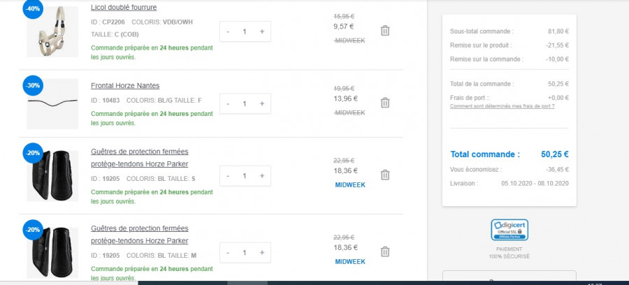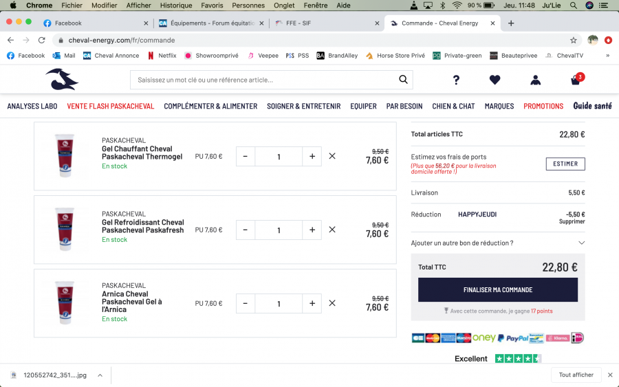 bon et petite commande chez cheval energy avec les ventes flash paska cheval et le happy jeudi pour les ports