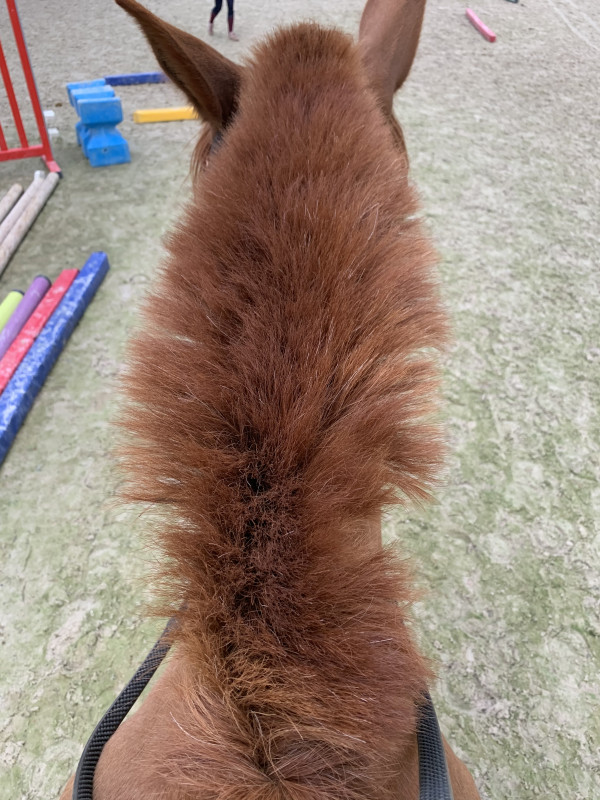 Oui oui déjà la marque ... fait dire qu'il a la couette depuis 7j 24/24 ! Et les crins sont biens moins fournis vers le garrot !