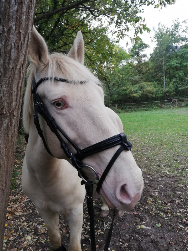 J'ai enfin trouvé un frontal qui lui va sur son filet décathlon !!! Et j'ai tenté une petite séance avec des protecs ça ne le gênait pas mais je vais les raccourcir un peu à l avant...!