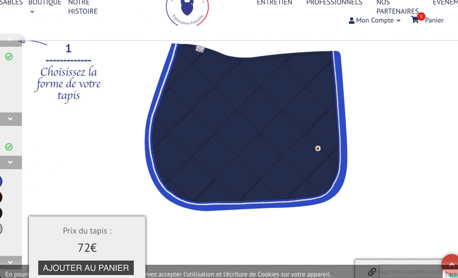 J'y mets 5 à 6 tapis mixte et dressage, Equiline et Eskadron.