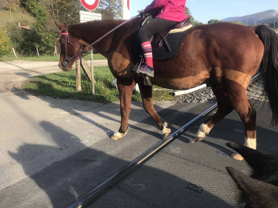 Niveau fitting et en selle, pour lui, c'était top ! Je trouvais que le centre de gravité de la selle était un poil reculé, mais pas cata... Et puis c'était le but recherché : rendre les taquets moins verticaux. En tout cas, même pas tout à fait bien sanglée la selle n'a pas bougée ! D'ailleurs, moi qui utilisais les contre-sanglons en V (un orienté vers la pointe d'arçon, l'autre plus au centre du quartier), j'ai remis tout au centre et l'ensemble était mieux : le poney n'a pas fait mine comme il fait parfois d'être gêné au sanglage... Bizarre !