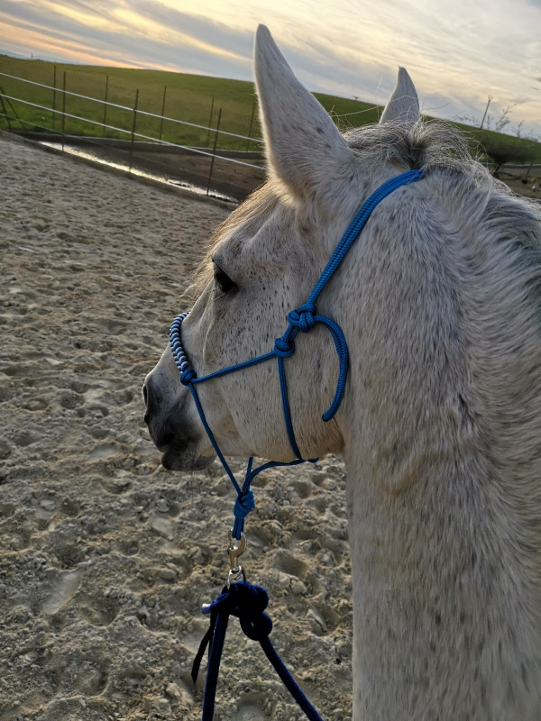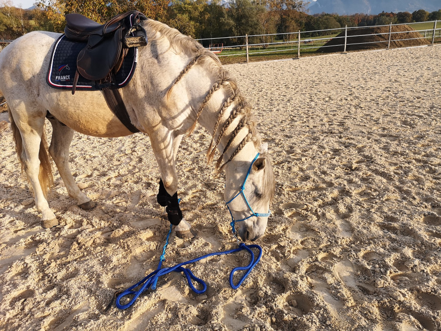 Et du coup, je me dis que ce bleu lui va bien (c'est un tapis de la cavalière)