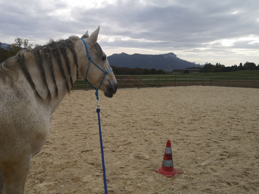 J'ai reparlé à la fille qui m'avait prêté le sien, en lui disant que malheureusement je ne le trouvais nulle part à acheter. Elle m'a proposé de me donner le sien, vu qu'elle a aussi reçu en cadeau, et que sa jument n'accepte pas l'armature en fer sur la muserolle.